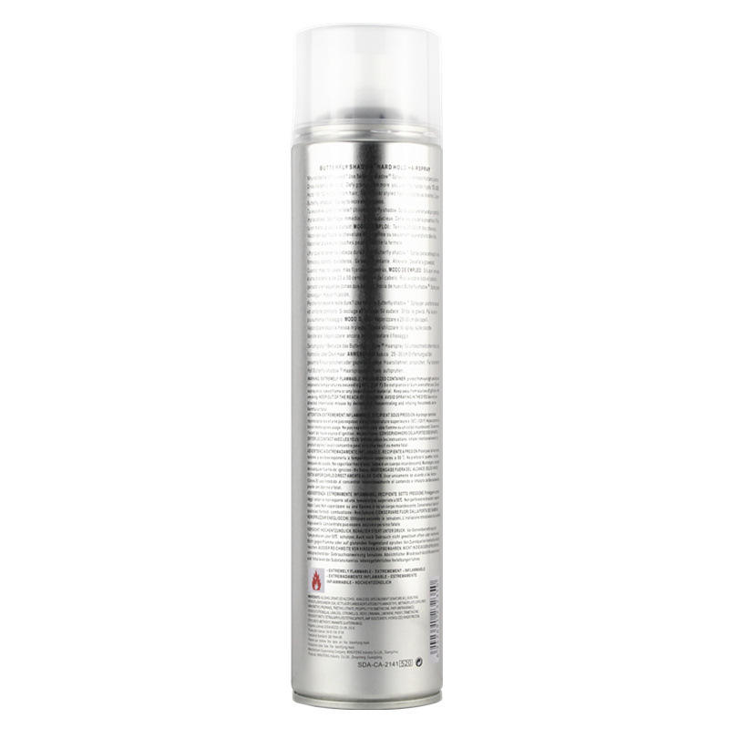 Maitrisez votre style avec le spray coiffant Butterfly Shadow, la solution de finition preferee des professionnels de la coiffure. Ce gel fixant sous forme de spray offre une tenue extra-forte pour sculpter et maintenir toutes vos creations capillaires, des plus simples aux plus audacieuses. Sa brume legere mais puissante assure une fixation durable sans laisser de residus collants ou de particules blanches. Sa formule unique est enrichie en extraits de plantes et en huile d olive, apportant ainsi une protection naturelle à la fibre capillaire tout en evitant le dessechement. Que ce soit pour un usage professionnel en salon ou pour votre routine quotidienne à domicile, ce produit garantit un fini brillant et une tenue impeccable tout au long de la journee. Disponible en plusieurs formats, dont le genereux flacon de 600 ml, il s adapte à tous vos besoins de coiffage.