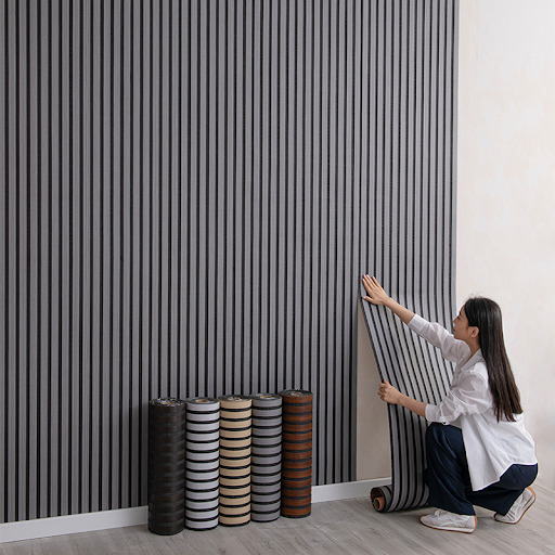 Apportez du relief et de l elegance à votre interieur avec le Panneau mural auto-adhesif cannele 3D, modele WB-001. Ce papier peint autocollant mural haut de gamme imite parfaitement le bois raye, offrant un rendu visuel à la fois chaleureux et sophistique. Fabrique en PVC d une epaisseur de 5 mm, il combine une technologie de surface lisse et texturee pour un effet tactile realiste.