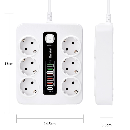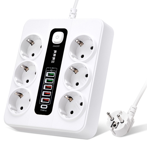 Capacite Massive : 6 prises secteur, 5 ports USB standard et 1 port de charge USB-C.