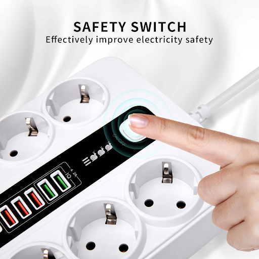 Conçue pour un usage general et residentiel, cette multiprise privilegie la securite pratique. Sa structure est fabriquee en PC ignifuge, un materiau resistant au feu de haute qualite, tandis que son cablage interne utilise du cuivre complet à 3 conducteurs. Son systeme antifoudre et sa mise à la terre standarde protegent efficacement vos equipements sensibles contre les surtensions.