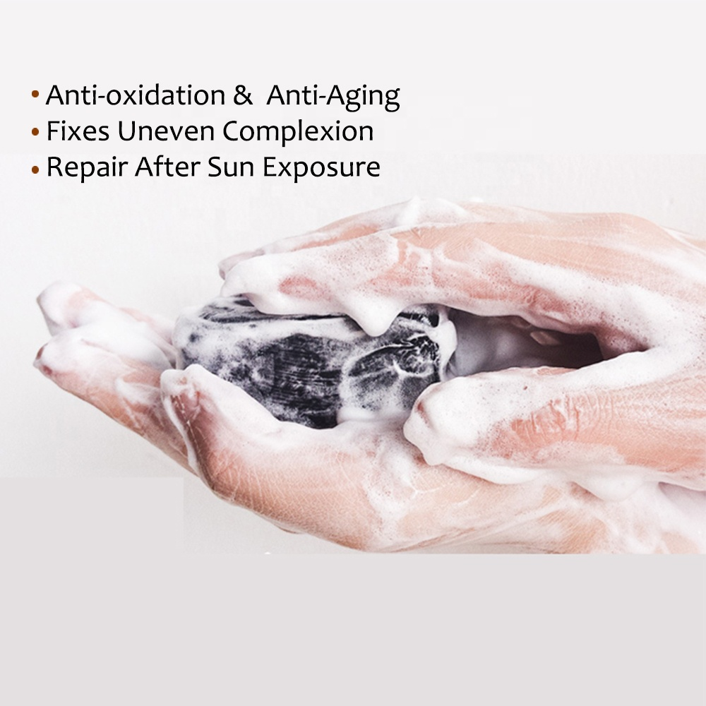 Ce savon solide et fait main est particulierement efficace pour le blanchiment et l eclat du teint, agissant comme un savon blanchissant pour la peau noire. Sa double action antiseptique et anti-acne permet de purifier l epiderme en profondeur, eliminant les impuretes et l exces de sebum sur le corps et le visage. Sa couleur noire authentique temoigne de sa richesse en actifs naturels non transformes.